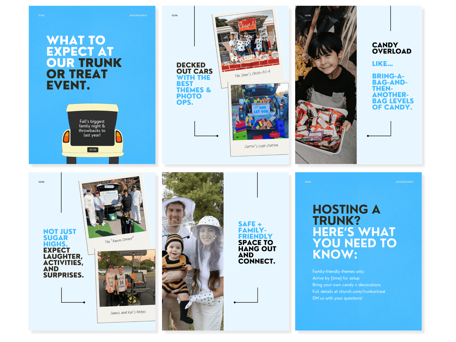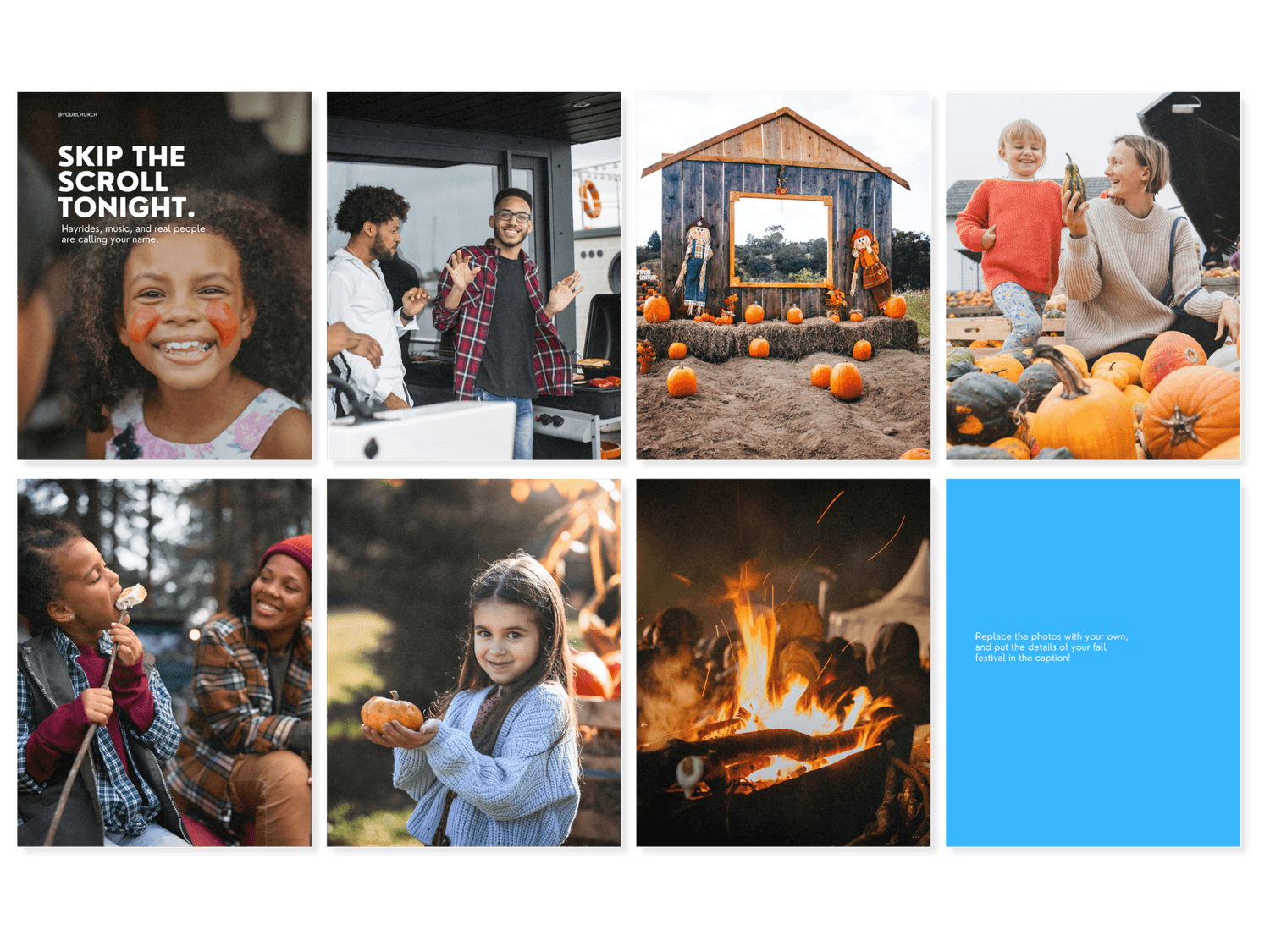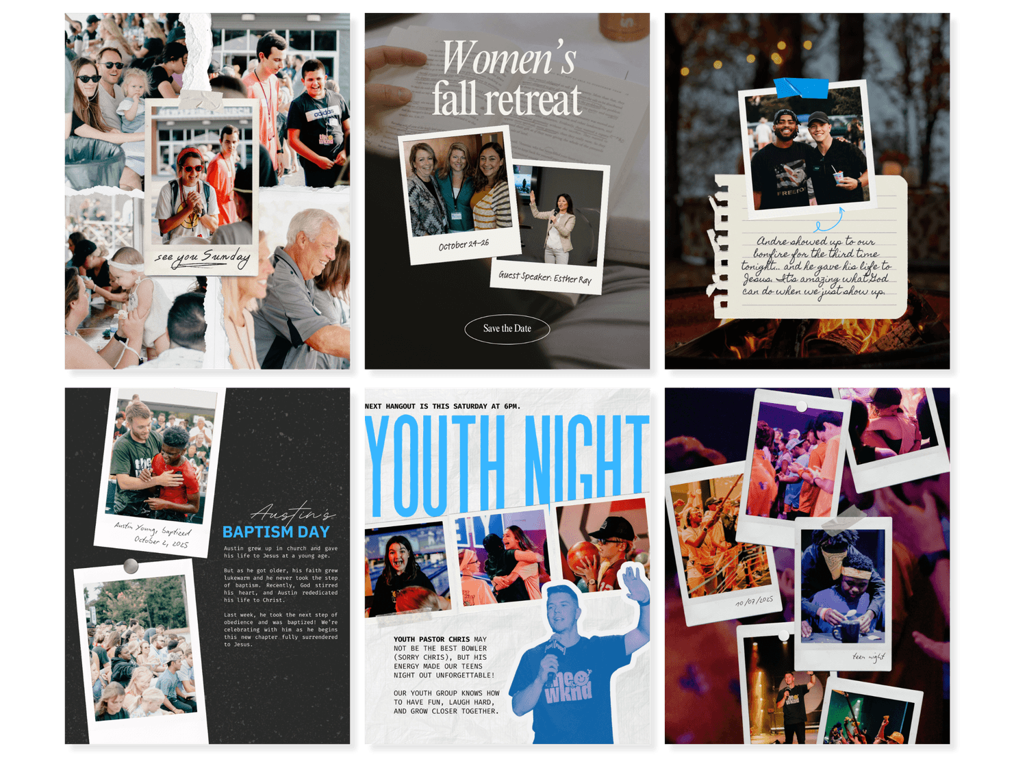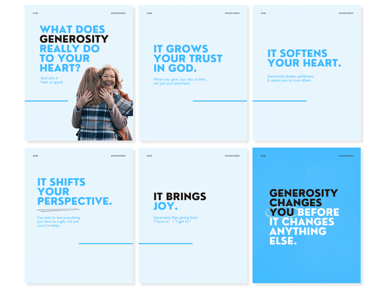 Posts, stories, reel covers, and carousels with prompts you can edit and customize for your church. Carousels count for 1 template even though they have multiple pages.
